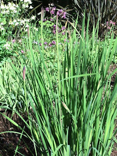 Siberian iris, crocosmia, Yellow flag iris, cattail, bulrush, common rush, and NW sweetgrass are a few of my favorite leafy, grass-like materials, as well as crocus, daffodil and other spring bulb foliage. Some compost-rescue materials available now through Autumn for cordage include corn husks and leaves, and onion, garlic and leek leaves.