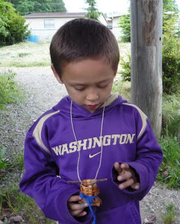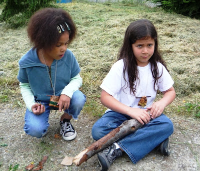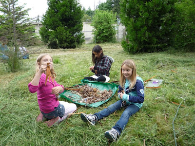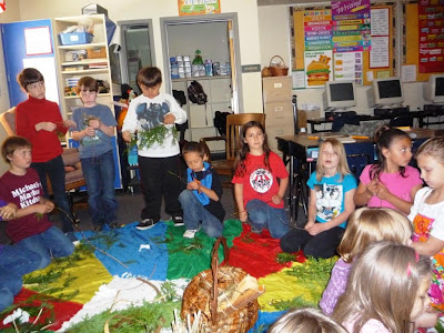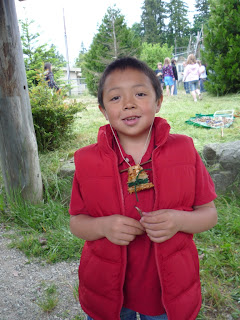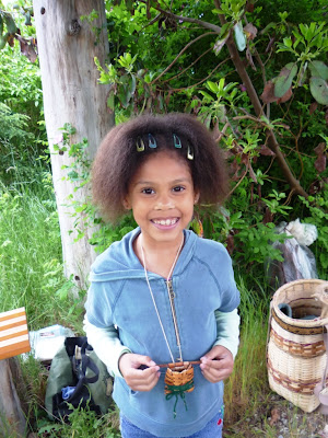 I was delighted to be able to show this 15 minute film to two classes at Suquamish Elementary School this June. Because of their youthful ages, with one class of first-graders and one class of second-graders, I used the film as an introduction to one of my teachers. I was there to help them learn to weave with Western Red Cedar bark, but I wouldn’t be there if I didn’t have many generous teachers. I stopped the film at a few places, for discussion and questions, and also to give students pieces of the cedar branches and bark that they were seeing Ed Carriere prepare in the film.